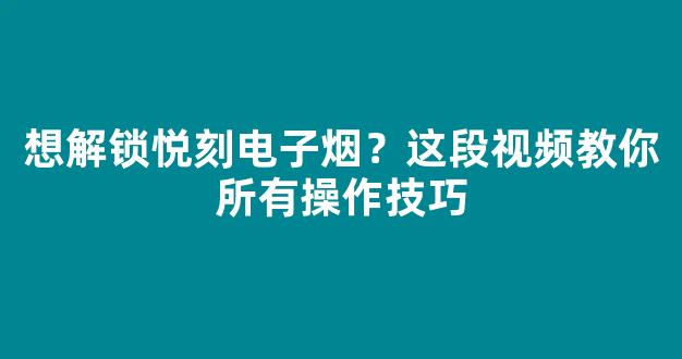 想解锁悦刻电子烟?这段视频教你所有操作技巧